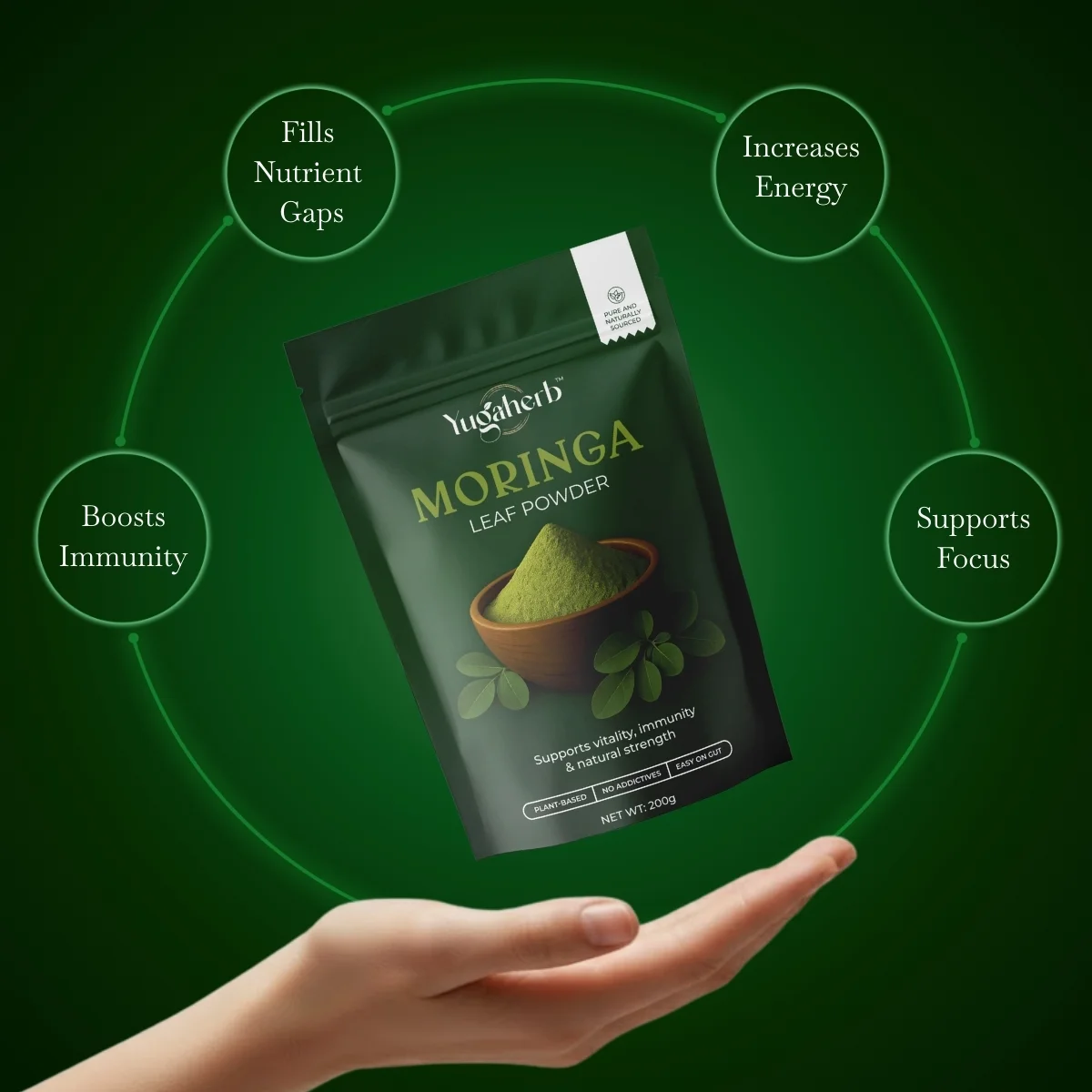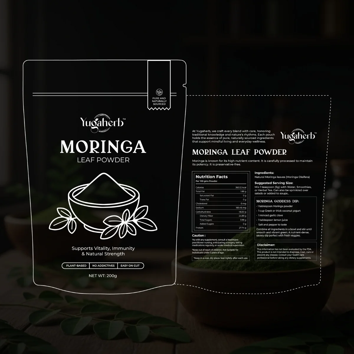 - Made from pure moringa leaves, no stems or fillers