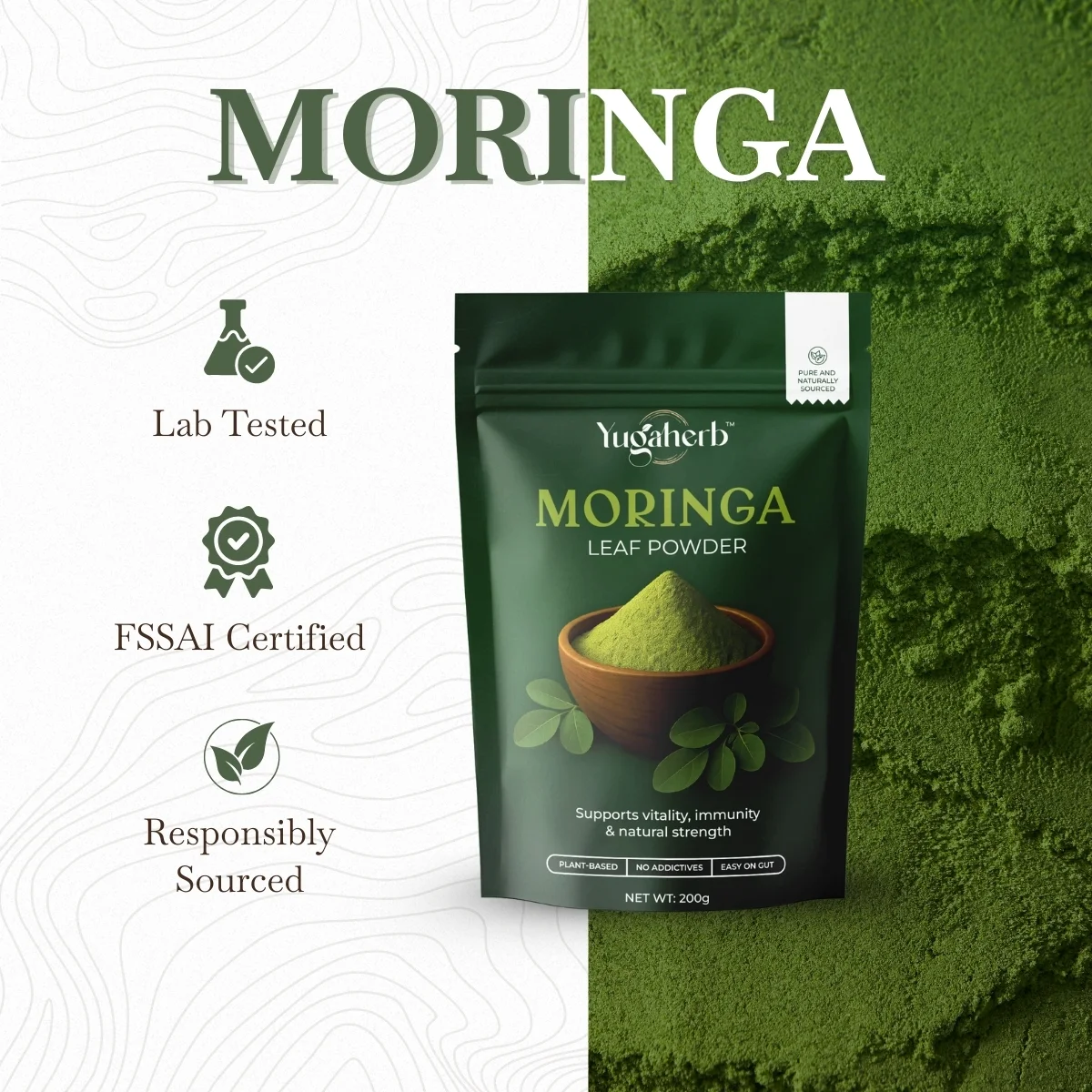 Made from pure moringa leaves only, no stems, fillers, or additives